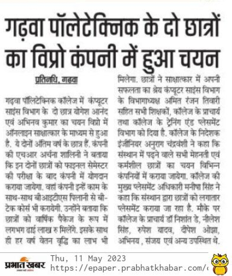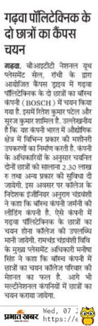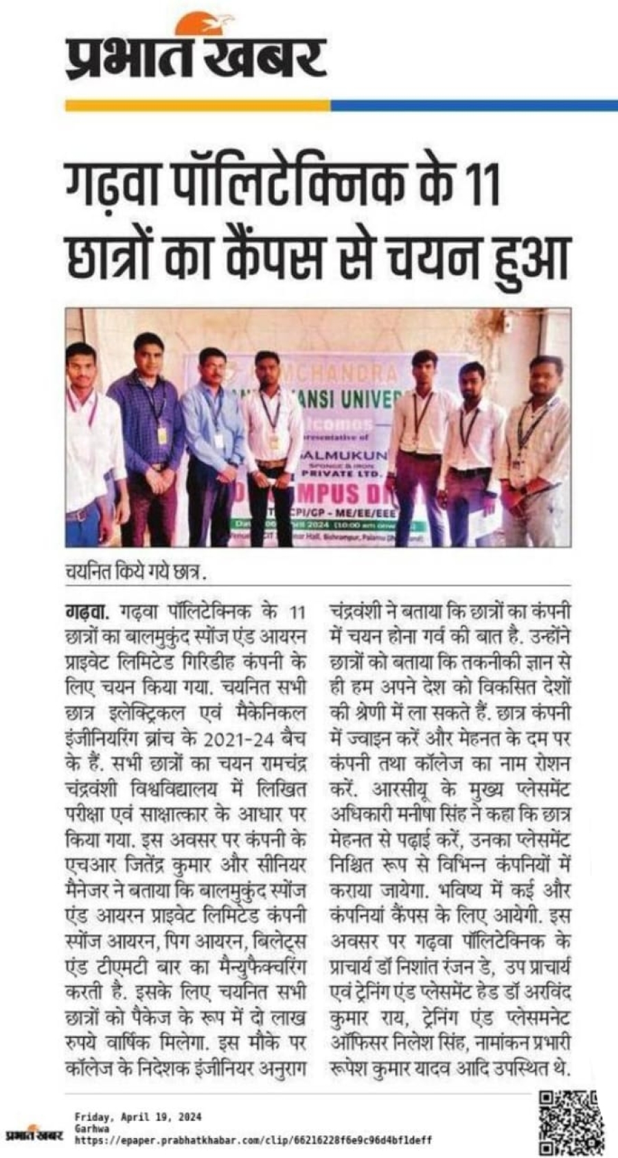 Location: Garhwa Polytechnic Date: 30 April 2022 (**) Time: 11 AM to 1 PM
